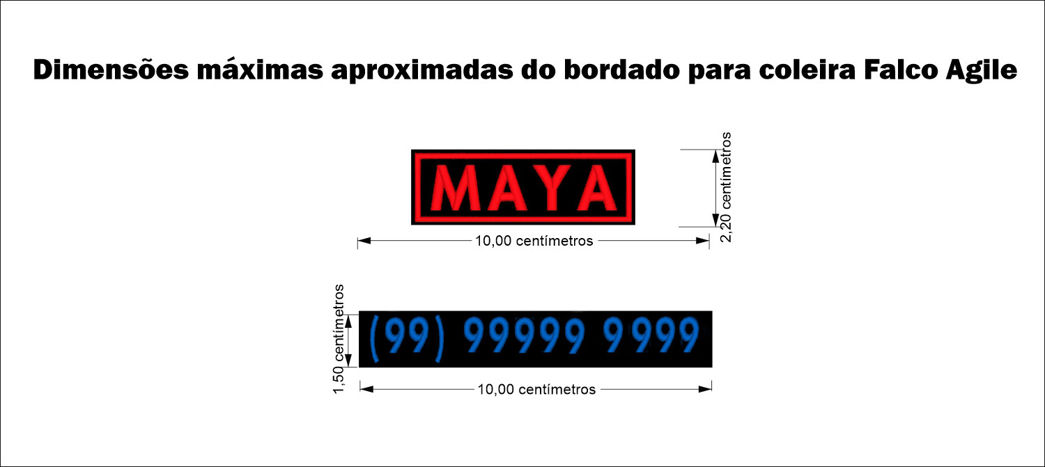 Nas imagens abaixo a exemplificação do local onde são fixados os bordados na coleira: