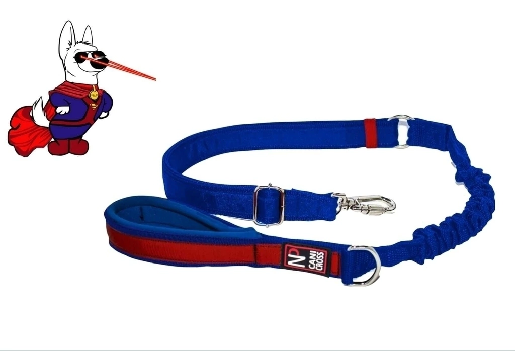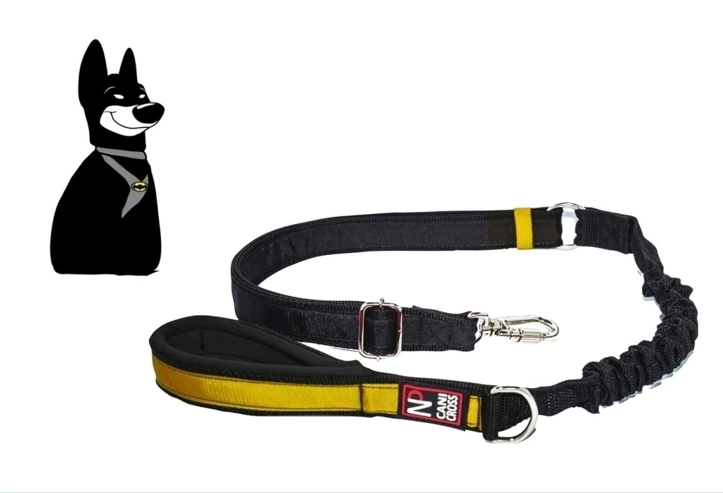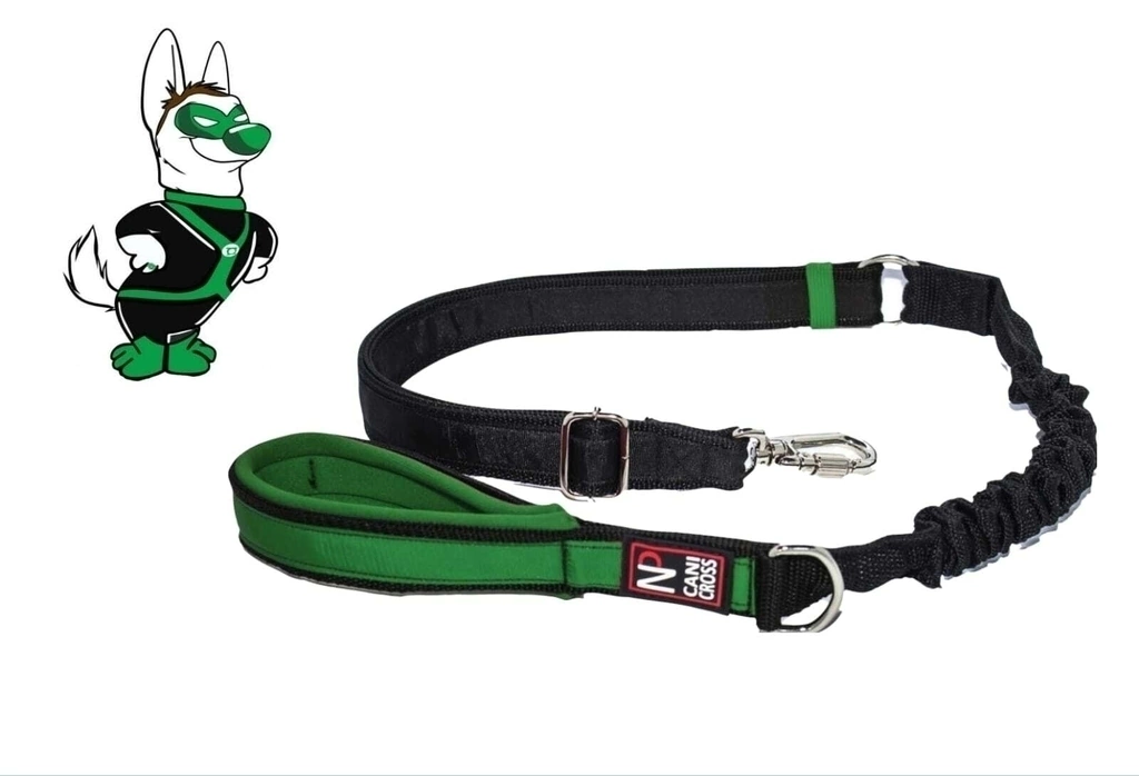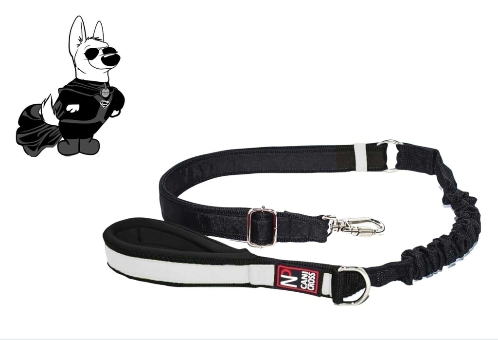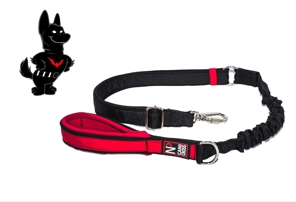Guia ajustável e com amortecimento para Skatejoring ou Passeio, com alça em NEOPRENE e com mosquetão trava rosqueável e destorcedor.
