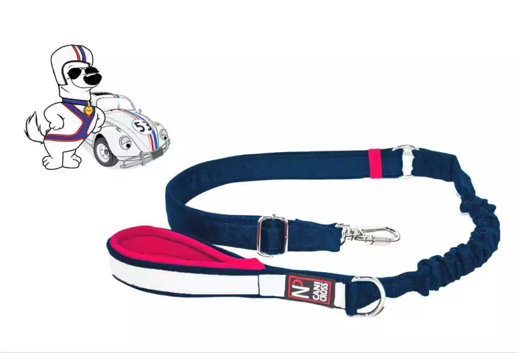 Guia ajustável e com amortecimento para Skatejoring ou Passeio, com alça em NEOPRENE e com mosquetão trava rosqueável e destorcedor.